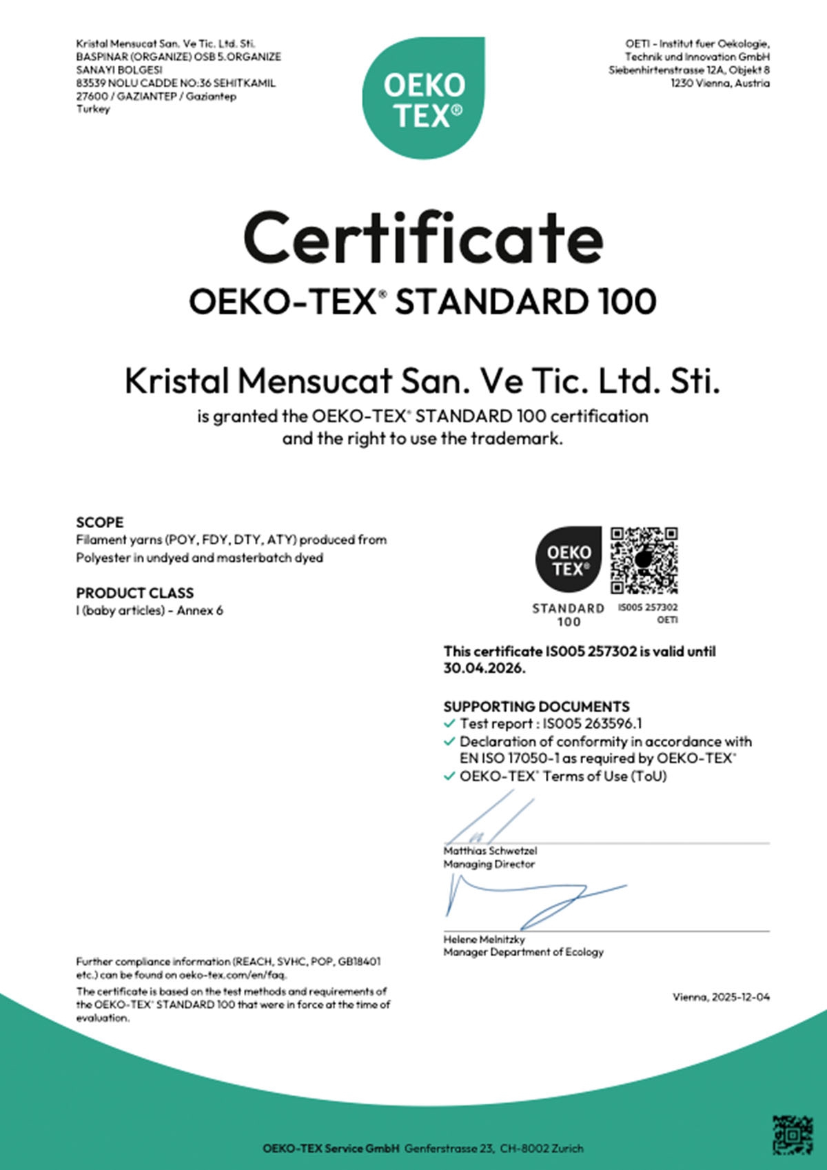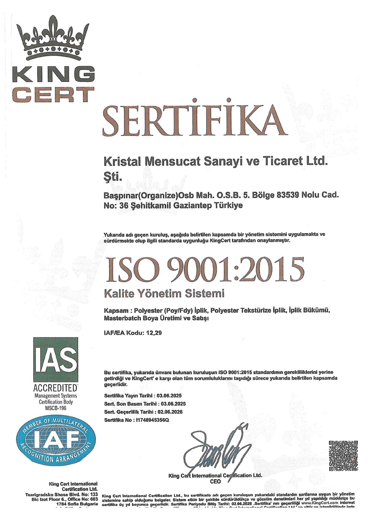 At Kristal Mensucat, we demonstrate our commitment to quality, reliability, and sustainability not only through our words, but also through the national and international certifications we hold.
